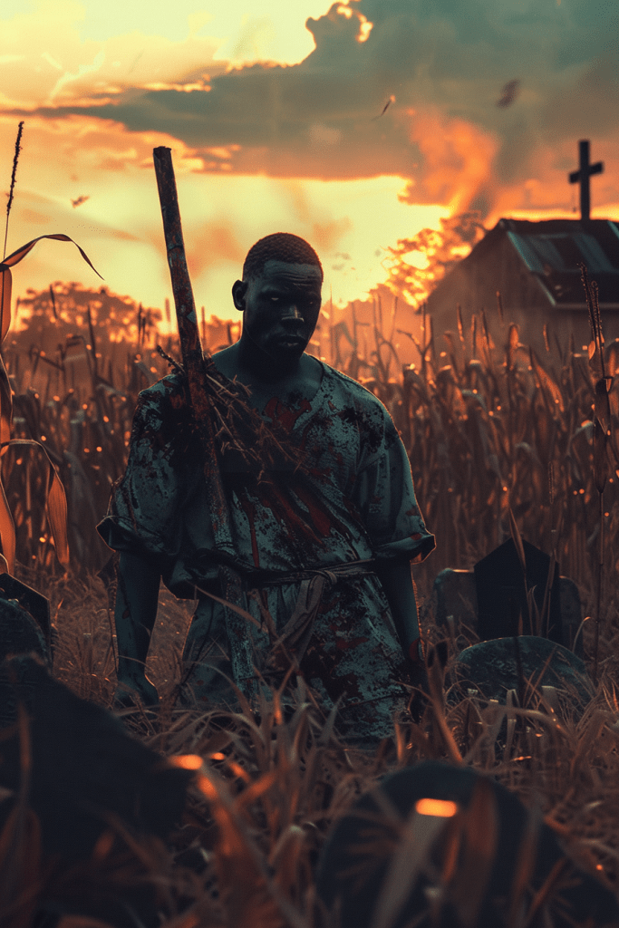 Caught sleeping in a bamboo hut. Adebayo drove the spade through the wooden wall, straight into his chest. The man gasped once, and then silence.