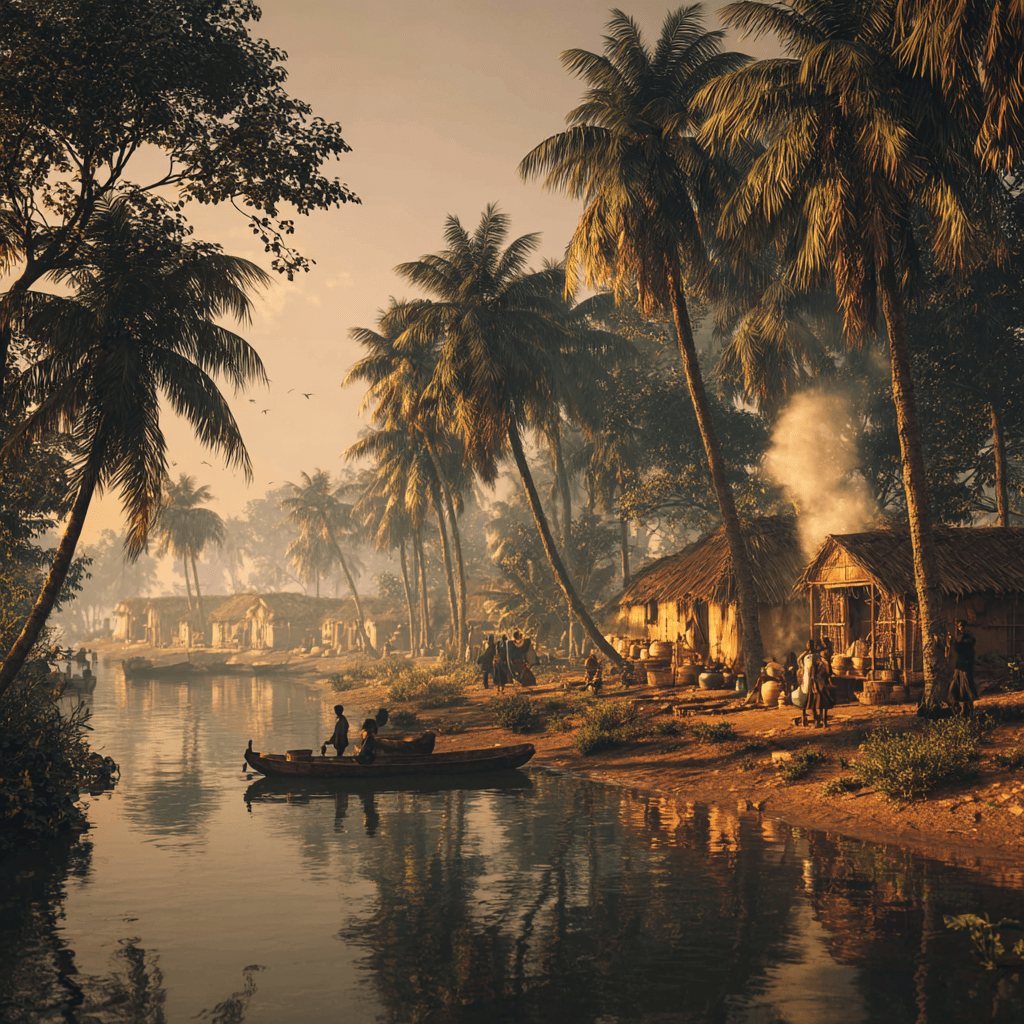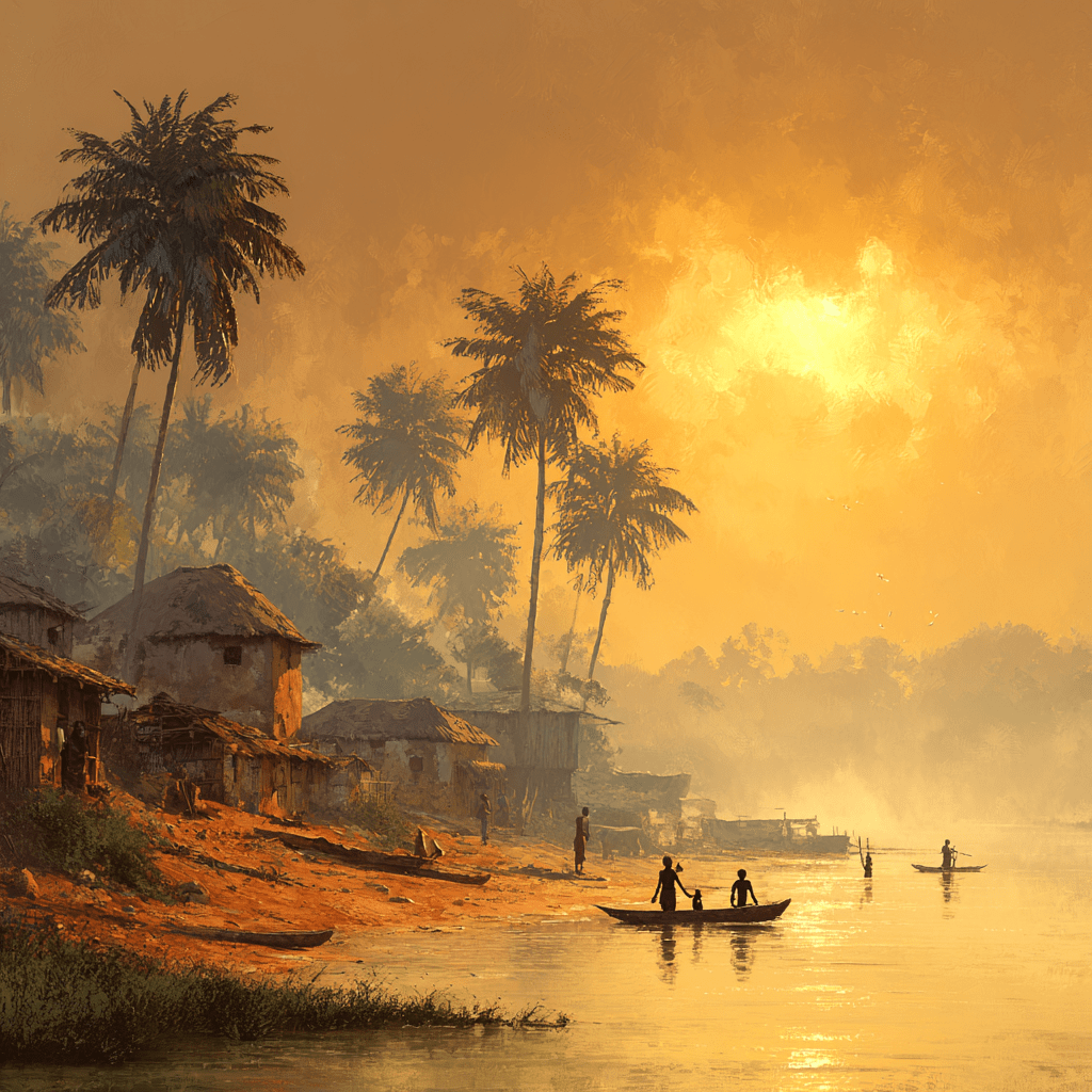 The morning sun rose gently over Nsugbe, spilling gold over the red earth and the glistening thread of the Omambala River. Mist still clung to the tall grasses, and the air smelled of palm wine, yam smoke, and dew. The village stirred slowly, native cocks crowing, pestles thudding in mortar, laughter floating between huts roofed with dry palm fronds.