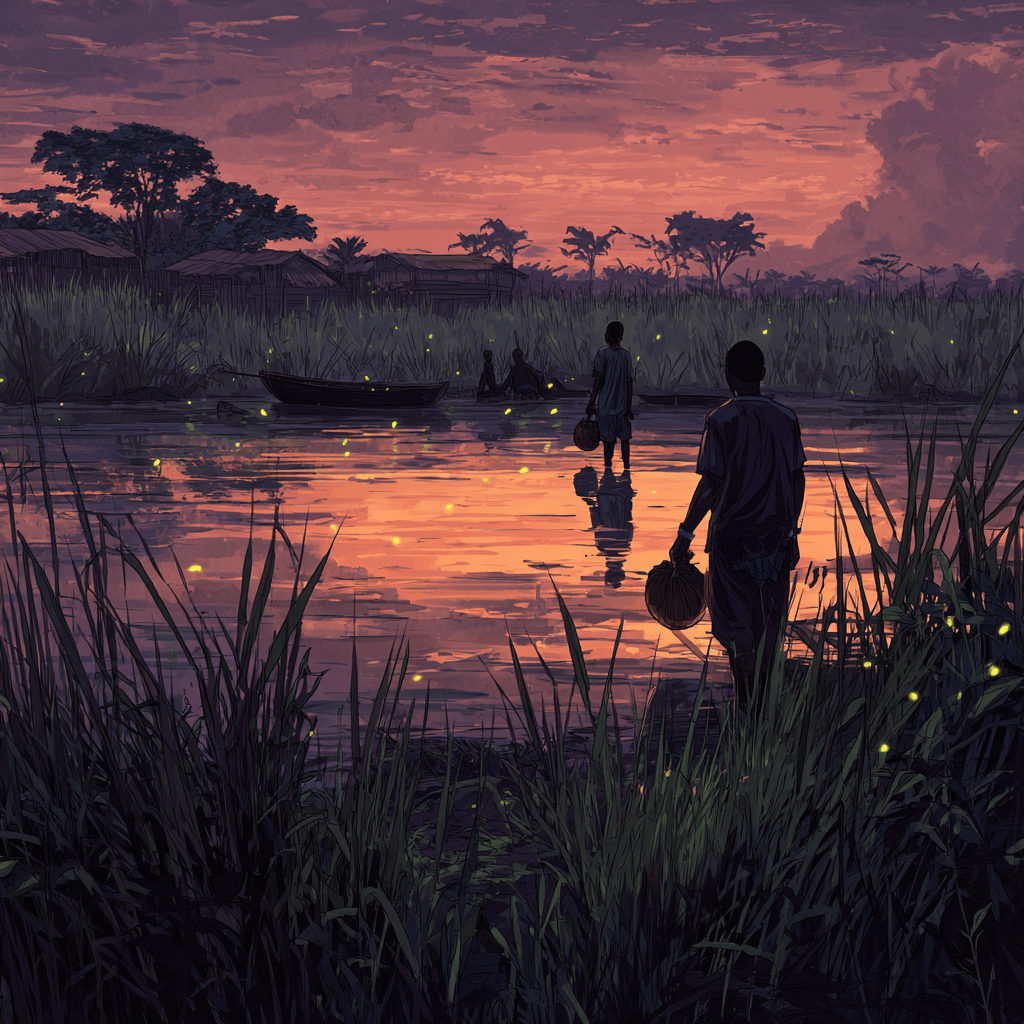 That evening, when the sun sank behind the palms, Onye Nkuzi stood alone by the riverbank. He held a small carved charm in his hand and whispered words no one nearby could understand. The wind stirred. The waters rippled faintly, as though listening.